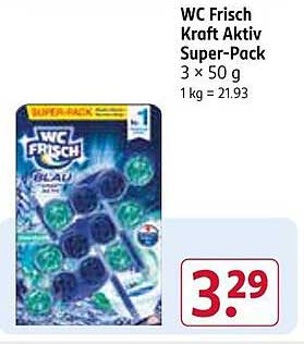 Sehen Sie sich jetzt das WC Frisch Kraft Aktiv Super-Pack 3 x 50 g Angebot im Rossmann Prospekt an. Dieses Angebot ist gültig von 29.09.2025 bis 02.10.2025.