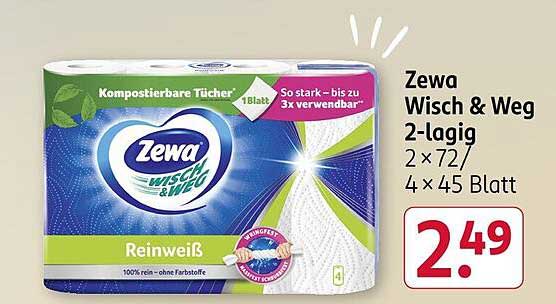 Sehen Sie sich jetzt das Zewa Wisch & Weg 2-lagig Angebot im Rossmann Prospekt an. Dieses Angebot ist gültig von 03.11.2025 bis 07.11.2025.