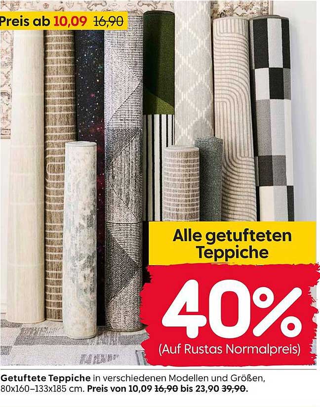 Sehen Sie sich jetzt das Alle getufteten Teppiche – 40% Rabatt auf Rustas Normalpreis Angebot im Rusta Prospekt an. Dieses Angebot ist gültig von 11.10.2025 bis 17.10.2025.