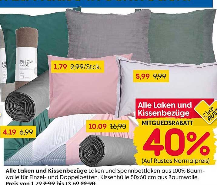 Im Rahmen dieses Angebots kannst du die Kissenbezüge bereits ab 1,79 Euro und die Laken ab 4,19 Euro erwerben. Der Normalpreis liegt deutlich höher, was eine Ersparnis von bis zu 40% bedeutet. So kannst du nicht nur dein Schlafzimmer erneuern, sondern gleichzeitig auch dein Budget schonen. Ob als unverzichtbare Ergänzung für dein Zuhause oder als praktische Auswahl für Gästezimmer – dieses Angebot ist ein echter Gewinner.