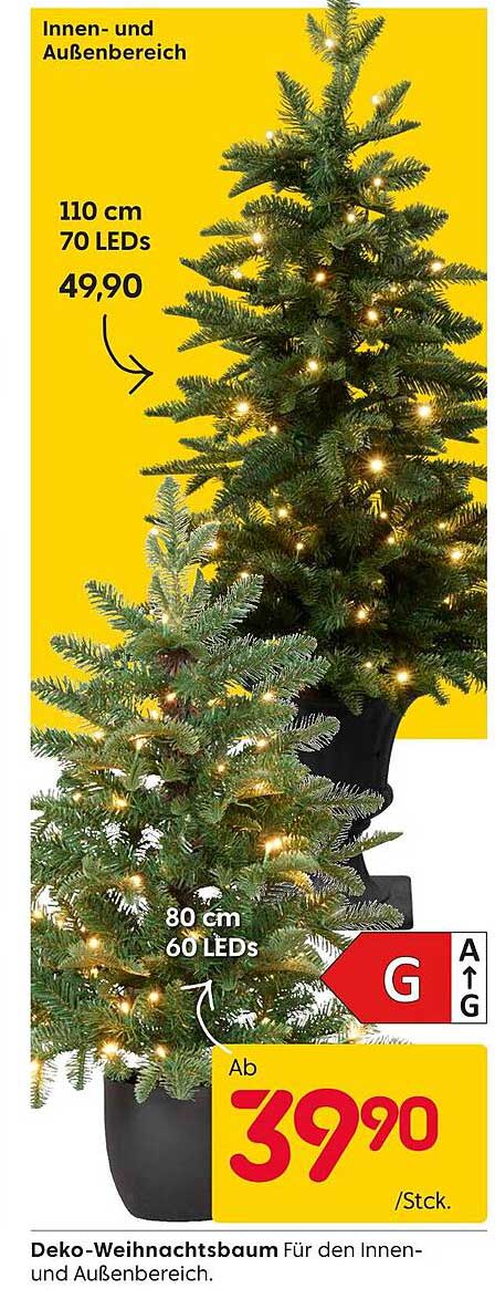 Der Deko-Weihnachtsbaum ist aus hochwertigem, langlebigem Material gefertigt und ist sowohl für den Innen- als auch für den Außenbereich geeignet. Er verfügt über 60 LEDs für die 80 cm Variante und 70 LEDs für die 110 cm Variante, die unkompliziert zu bedienen sind. Der Baum ist einfach zu dekorieren und hält viele Saisons lang. Mit einer stabilen Basis sorgt er dafür, dass er auch im Freien sicher steht.