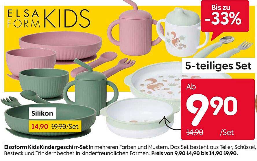 Das Elsaform Kids Kindergeschirr-Set präsentiert sich in fröhlichen Farben und kindgerechten Designs, die beim Essen für gute Laune sorgen. Vom 18. Oktober bis zum 24. Oktober 2025 können Sie dieses attraktive Set zu einem sehr günstigen Preis von nur 9,90 Euro erwerben. ideal für alle Eltern, die Wert auf Qualität und Stil legen, während sie gleichzeitig Geld sparen!