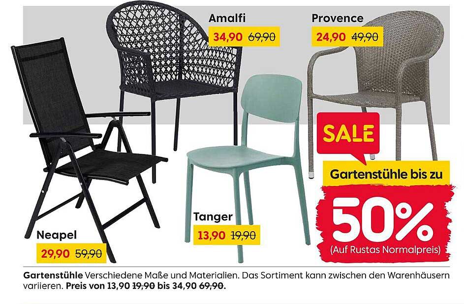 Die warme Jahreszeit steht vor der Tür und das bedeutet, dass es an der Zeit ist, den Garten oder Balkon ansprechend zu gestalten. Dieses spezielle Angebot auf dieser Seite präsentiert eine Auswahl von Gartenstühlen, die nicht nur stilvoll, sondern auch äußerst komfortabel sind. Mit Rabatten von bis zu 50% auf die Normalpreise von Rusta macht es das jetzt besonders einfach, Ihre Outdoor-Bereiche mit tollen Möbeln zu verschönern.