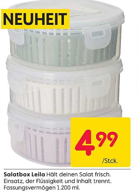Sehen Sie sich jetzt das Salatbox Leila - Hält deinen Salat frisch Angebot im Rusta Prospekt an. Dieses Angebot ist gültig von 08.09.2025 bis 13.09.2025.