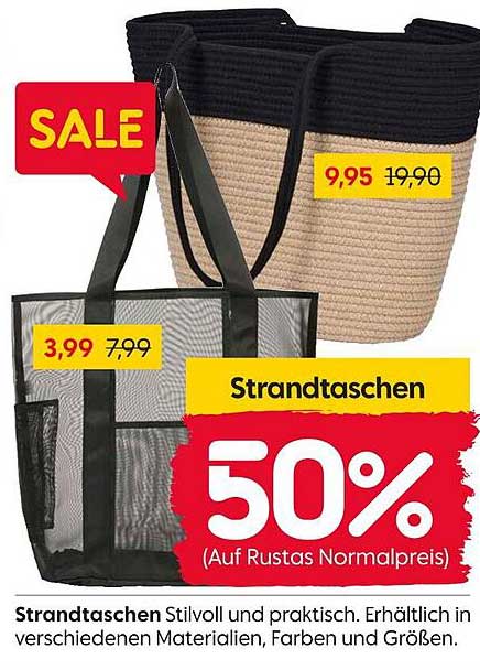 Sehen Sie sich jetzt das Strandtaschen Angebot im Rusta Prospekt an. Dieses Angebot ist gültig von 28.06.2025 bis 04.07.2025.