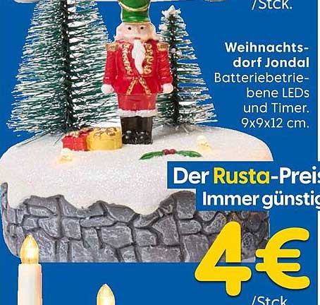 Sehen Sie sich jetzt das Weihnachtsdorf Jondal mit LEDs und Timer Angebot im Rusta Prospekt an. Dieses Angebot ist gültig von 18.10.2025 bis 24.10.2025.