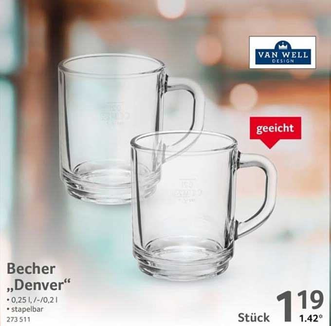 Entdecken Sie die eleganten Becher „Denver“ von VAN WELL, die nicht nur funktional sind, sondern auch ein stilvolles Design bieten. Diese stapelbaren Becher sind die ideale Ergänzung für jede Küche und jeden Tisch. Ob für Kaffee, Tee oder andere Getränke, sie sind vielseitig einsetzbar und damit ein Must-Have für jeden Haushalt.
