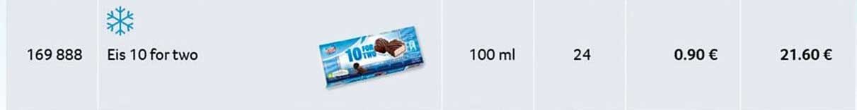 Sehen Sie sich jetzt das Eis 10 for two Angebot im Selgros Prospekt an. Dieses Angebot ist gültig von 01.04.2025 bis 30.04.2025.
