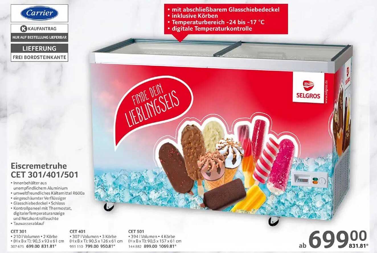Sehen Sie sich jetzt das Eiscremtruhe CET 301/401/501 Angebot im Selgros Prospekt an. Dieses Angebot ist gültig von 30.05.2025 bis 11.06.2025.