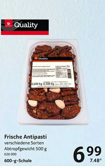 Sehen Sie sich jetzt das Frische Antipasti verschiedene Sorten 500 g Angebot im Selgros Prospekt an. Dieses Angebot ist gültig von 06.03.2025 bis 20.04.2025.