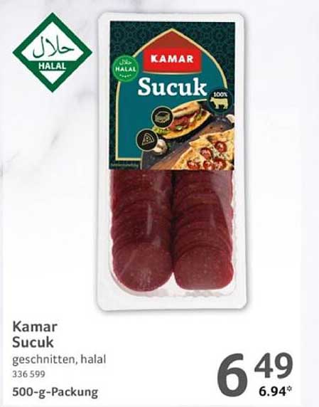 Sehen Sie sich jetzt das Kamar Sucuk, geschnitten, halal, 500-g-Packung Angebot im Selgros Prospekt an. Dieses Angebot ist gültig von 17.07.2025 bis 23.07.2025.