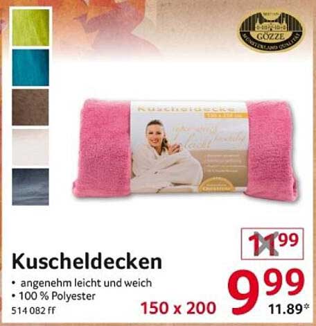 Mit einem attraktiven Preis von nur 9,99 € sparen Sie im Vergleich zum regulären Preis von 11,99 € satte 2,00 €. Dieses Schnäppchen ist eine hervorragende Gelegenheit, Ihre Heimtextilien aufzufrischen und gleichzeitig Geld zu sparen. Nutzen Sie die Chance, sich eine hochwertige Kuscheldecke zu sichern und genießen Sie den Komfort, den sie bietet.