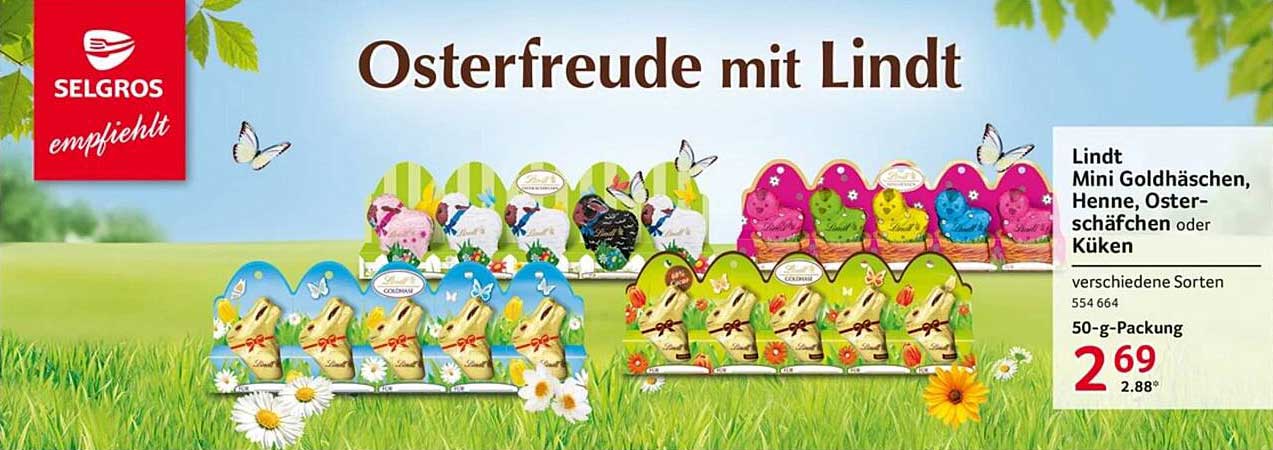 Sehen Sie sich jetzt das Lindt Mini Goldhäschen, Henne, Osterschäfchen oder Küken – verschiedene Sorten Angebot im Selgros Prospekt an. Dieses Angebot ist gültig von 10.04.2025 bis 17.04.2025.
