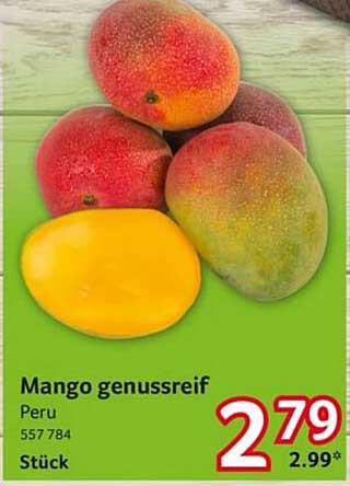 Entdecken Sie die köstliche Mango genussreif direkt aus Peru! Diese saftige Frucht ist nicht nur ein Genuss für den Gaumen, sondern auch ein echter Vitaminlieferant. Ideal für frische Smoothies, Salate oder einfach als Snack zwischendurch. Auf dieser Seite finden Sie dieses unwiderstehliche Angebot, das vom 10. bis 17. April 2025 gültig ist.