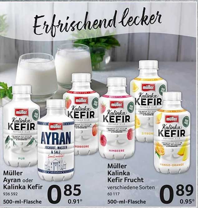 Erfrischend und nährend – die Müller Kalinka Produkte sind die perfekte Wahl für alle, die Genuss und Gesundheit in einem suchen. Egal, ob Sie die cremige Konsistenz des Kalinka Kefirs oder die leicht salzige Erfrischung des Ayrans bevorzugen, hier finden Sie das ideale Getränk für jede Gelegenheit. Und das Beste ist: Dieses unwiderstehliche Angebot ist nur für kurze Zeit gültig!
