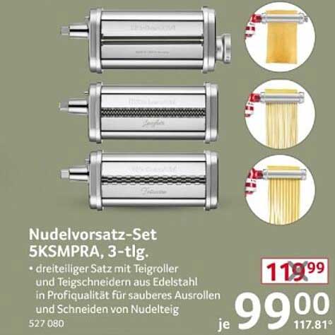 Sehen Sie sich jetzt das Nudelvorsatz-Set 5KSMPR, 3-tlg. Angebot im Selgros Prospekt an. Dieses Angebot ist gültig von 25.09.2025 bis 01.10.2025.