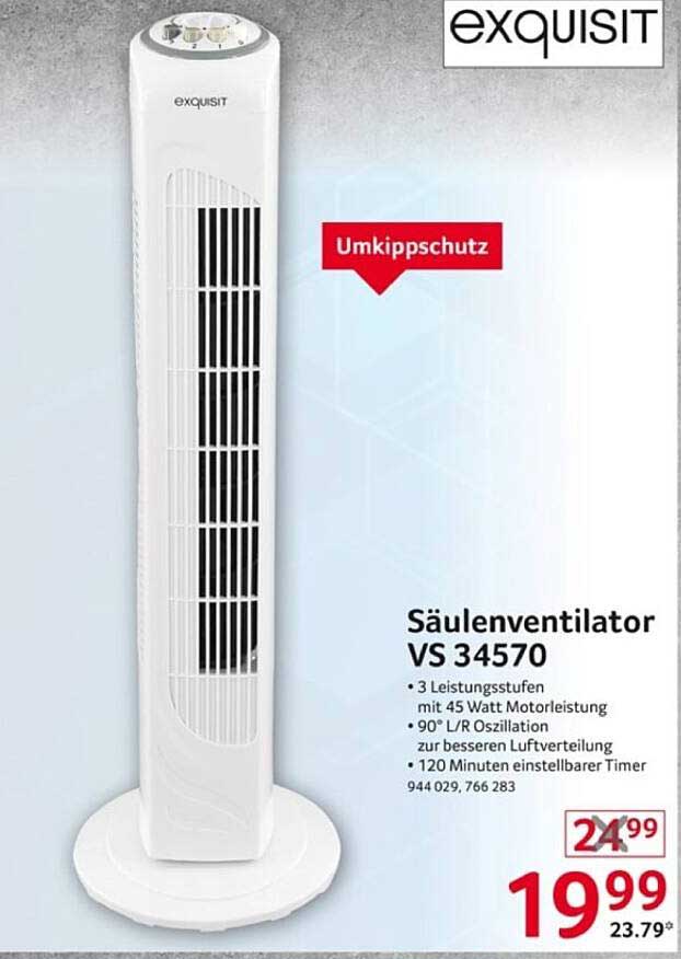 Der Säulenventilator VS 34570 ist aktuell für nur 19,99 Euro erhältlich, verglichen mit dem regulären Preis von 24,99 Euro. Das bedeutet eine Ersparnis von 5 Euro, was eine fantastische Möglichkeit ist, sich an heißen Tagen eine kühle Brise zu gönnen, ohne das Budget zu strapazieren. Nutzen Sie diese Gelegenheit, um sich dieses tolle Angebot zu sichern!