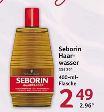 Aktuell ist das Seborin Haarwasser zum Preis von nur 2,49 € erhältlich. Der reguläre Preis liegt normalerweise bei etwa 2,96 €, was eine Ersparnis von 0,47 € bedeutet. Nutzen Sie diese Gelegenheit und gönnen Sie sich die Vorteile eines gesunden Haares zum reduzierten Preis!