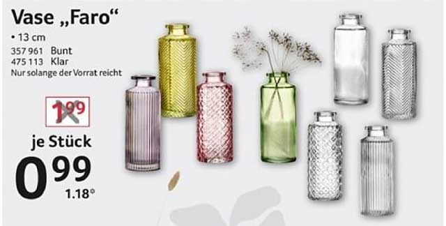 Die Vase „Faro“ ist jetzt für nur 0,99 € erhältlich, was einen tollen Preis-Leistungs-Verhältnis darstellt, insbesondere im Vergleich zum ursprünglichen Preis von 1,99 €. Dies ist eine Ersparnis von 1,00 € – eine hervorragende Möglichkeit, Ihr Zuhause stilvoll zu dekorieren, ohne dabei das Budget zu sprengen.