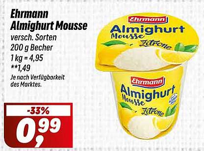 Das Angebot für die Ehrmann Almighurt Mousse in verschiedenen Sorten ist ein wahrer Genuss für jeden, der frische und cremige Desserts liebt. Ideal für den kleinen Hunger oder als süßer Abschluss eines Mahls, bietet dieses Produkt eine köstliche Möglichkeit, sich zu verwöhnen. Nutzen Sie die Gelegenheit, diese Leckerei zum Aktionspreis zu sichern!