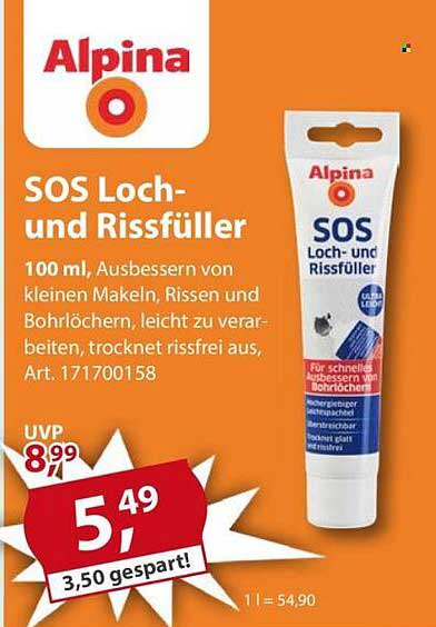 Sehen Sie sich jetzt das Alpina SOS Loch- und Rissfüller 100 ml Angebot im Sonderpreis Baumarkt Prospekt an. Dieses Angebot ist gültig von 27.09.2025 bis 03.10.2025.