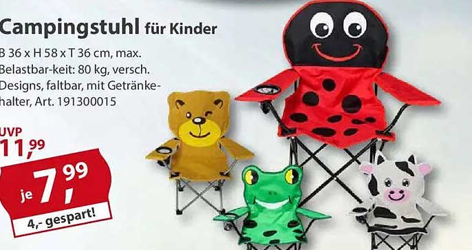 Sehen Sie sich jetzt das Campingstuhl für Kinder Angebot im Sonderpreis Baumarkt Prospekt an. Dieses Angebot ist gültig von 05.04.2025 bis 11.04.2025.
