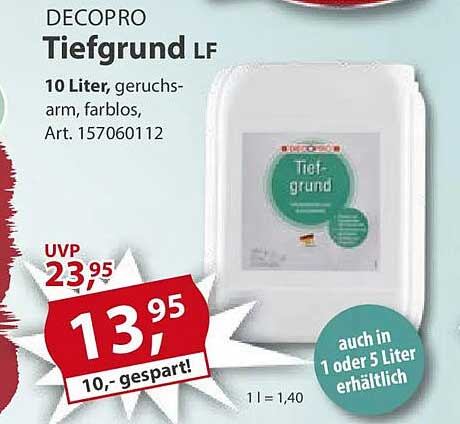 Mit einem Preis von nur 13,95 Euro statt der ursprünglichen UVP von 23,95 Euro sparen Sie stolze 10 Euro. Dies macht das Angebot besonders attraktiv und bietet Ihnen die Möglichkeit, von einem deal zu profitieren, den Sie nicht verpassen sollten. Im Vergleich zu anderen Produkten in dieser Kategorie ist der DECOPRO Tiefgrund LF nicht nur qualitativ hochwertig, sondern auch äußerst preiswert.