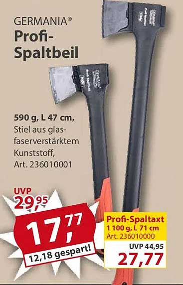 Sehen Sie sich jetzt das GERMANIA® Profi-Spaltbeil Angebot im Sonderpreis Baumarkt Prospekt an. Dieses Angebot ist gültig von 04.10.2025 bis 10.10.2025.