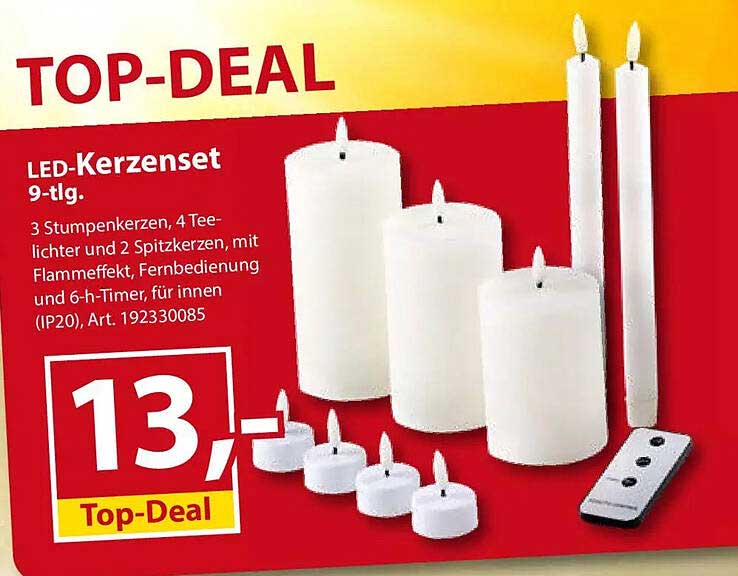 Sehen Sie sich jetzt das LED-Kerzenset 9-tlg. Angebot im Sonderpreis Baumarkt Prospekt an. Dieses Angebot ist gültig von 01.11.2025 bis 07.11.2025.