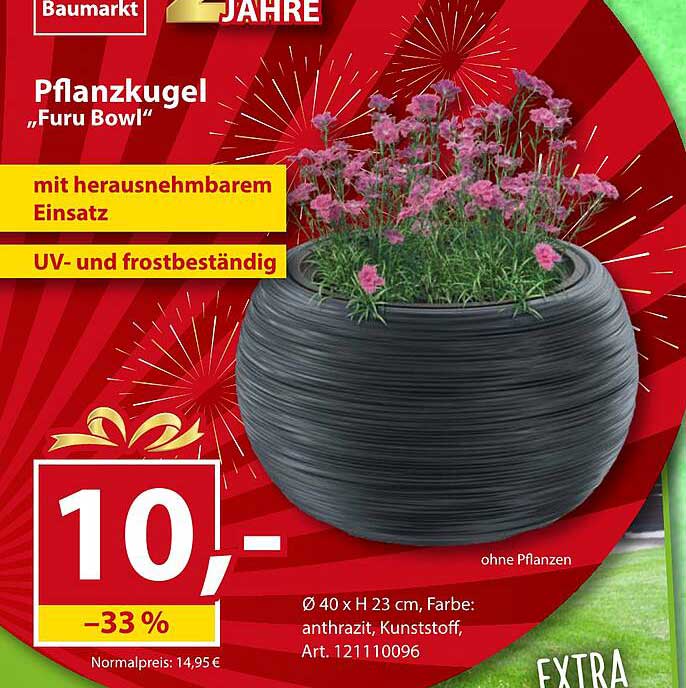 Sehen Sie sich jetzt das Pflanzkugel "Furu Bowl" Angebot im Sonderpreis Baumarkt Prospekt an. Dieses Angebot ist gültig von 19.04.2025 bis 25.04.2025.