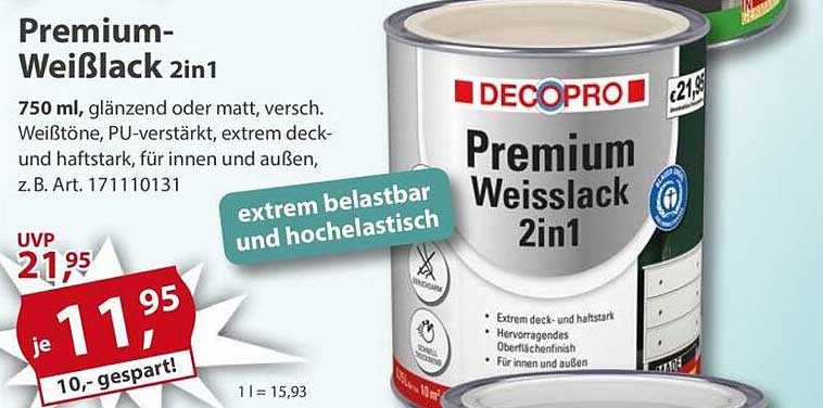 Für nur 11,95 €, im Vergleich zu dem regulären Preis von 21,95 €, sparen Sie hier satte 10 €! Das bedeutet, dass Sie nicht nur in ein Qualitätsprodukt investieren, sondern auch Ihren Geldbeutel schonen. Die Ersparnis von 45 % macht diesen Premium-Weißlack zu einem besonders attraktiven Angebot.