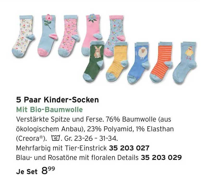 Der reguläre Preis für ein Set dieser hochwertigen Kinder-Socken liegt bei 8,99 €. Ein tolles Preis-Leistungs-Verhältnis, denn Sie sichern sich fünf Paar für nur 8,99 €. Verglichen mit anderen Angeboten auf dem Markt, zeichnen sie sich durch ihre Nachhaltigkeit und die ansprechenden Designs aus.