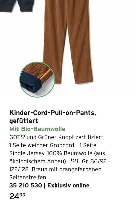 Sehen Sie sich jetzt das Kinder-Cord-Pull-on-Pants, gefüttert mit Bio-Baumwolle Angebot im Tchibo Prospekt an. Dieses Angebot ist gültig von 05.11.2025 bis 08.11.2025.