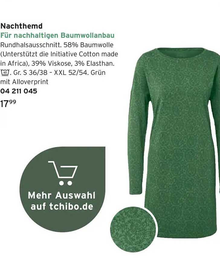 Sehen Sie sich jetzt das Nachthemd für nachhaltigen Baumwollanbau Angebot im Tchibo Prospekt an. Dieses Angebot ist gültig von 01.10.2025 bis 31.10.2025.