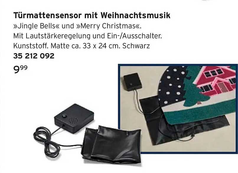 Sehen Sie sich jetzt das Türmatten-Sensor mit Weihnachtsmusik Angebot im Tchibo Prospekt an. Dieses Angebot ist gültig von 29.10.2025 bis 18.11.2025.