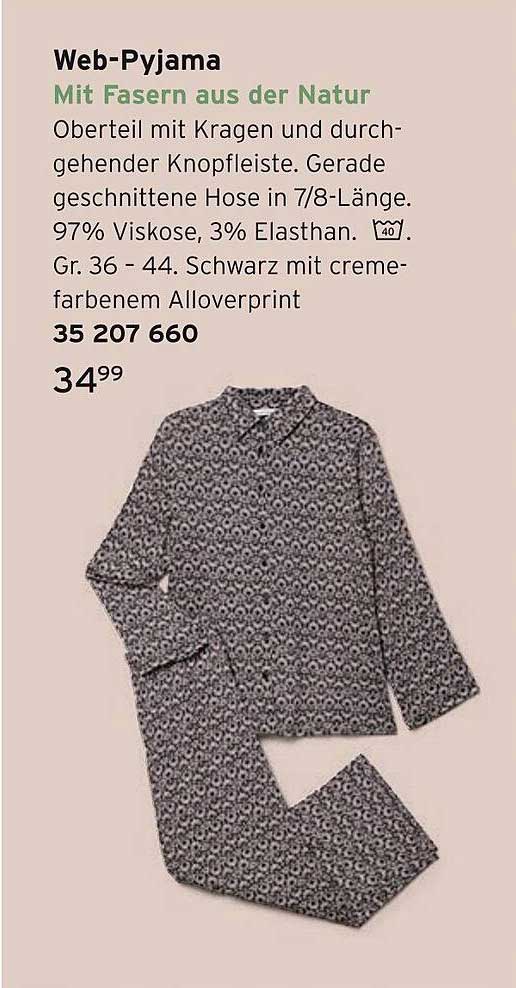 Aktuell können Sie diesen hochwertigen Web-Pyjama für nur 34,99 € erwerben. Im Vergleich zum regulären Preis bietet Ihnen dieses Angebot eine tolle Ersparnis. Genießen Sie den Luxus und die Bequemlichkeit eines stilvollen Schlafanzugs, ohne dabei Ihr Budget zu sprengen.