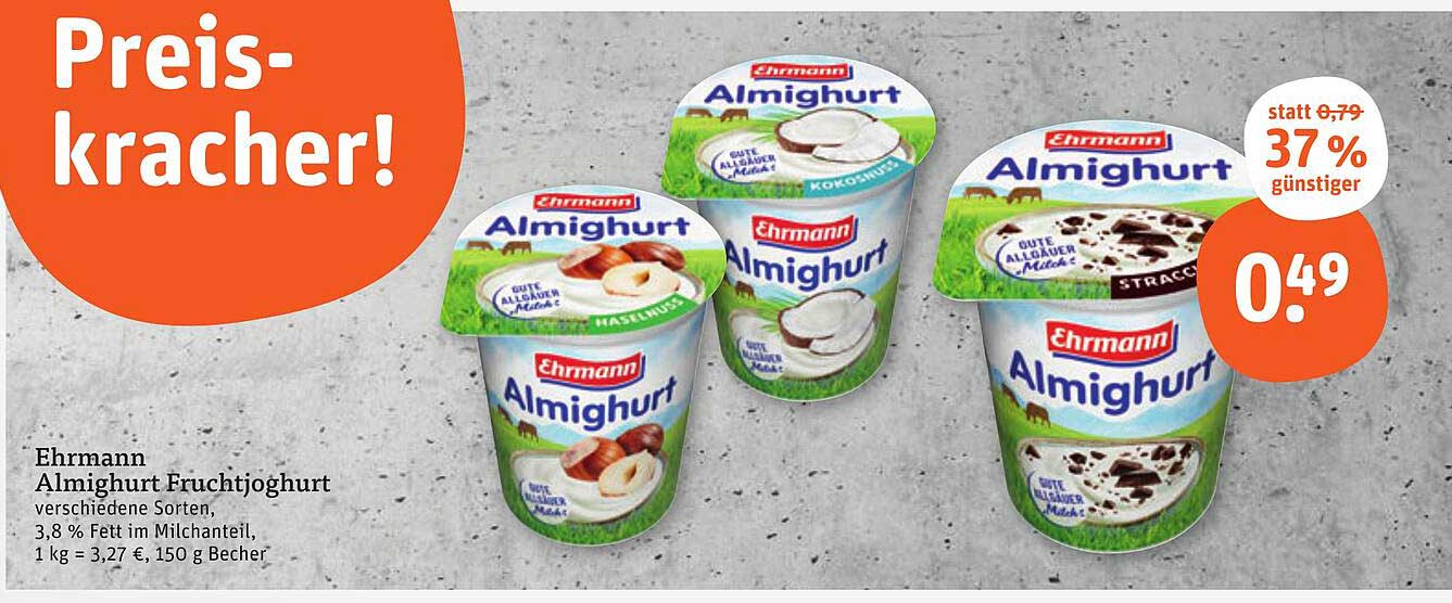 Verglichen mit dem regulären Preis von 0,79 Euro, sparen Sie bei diesem Angebot beeindruckende 0,30 Euro pro Becher! Das macht den Almighurt nicht nur lecker, sondern auch budgetfreundlich. Es ist die perfekte Gelegenheit, verschiedene Sorten auszuprobieren und Ihren Favoriten zu finden.