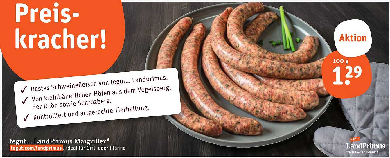 Entdecken Sie die köstlichen LandPrimus Maigriller von tegut! Dieses besondere Angebot bietet Ihnen besten Geschmack und höchste Qualität. Perfekt für Grillabende oder das Kochen in der Pfanne, garantieren die Maigriller ein genussvolles Erlebnis, das Sie nicht verpassen sollten.