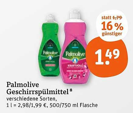 Der reguläre Preis für das Palmolive Geschirrspülmittel liegt bei 1,79 Euro, was bedeutet, dass Sie bei diesem Angebot 0,30 Euro sparen können. Das macht nicht nur das Geschirrspülen einfacher, sondern auch deutlich günstiger! Ein Preis von 1,49 Euro für eine hochwertige Reinigungslösung ist schwer zu übertreffen.