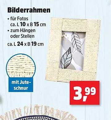 Sehen Sie sich jetzt das Bilderrahmen mit Juteschnur Angebot im Thomas Philipps Prospekt an. Dieses Angebot ist gültig von 05.05.2025 bis 10.05.2025.