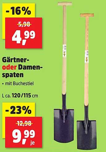 Im Vergleich zum regulären Preis von 5,98 Euro sparen Sie mit nur 4,99 Euro beeindruckende 16%! Das ist eine hervorragende Gelegenheit, um in gute Gartenwerkzeuge zu investieren und gleichzeitig den Geldbeutel zu schonen. Wenn Sie auf der Suche nach einem weiteren nützlichen Werkzeug sind, beachten Sie auch den Damenspaten, der für 9,99 Euro erhältlich ist, wodurch Sie ebenfalls 23% sparen können.