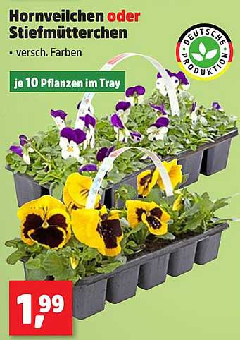 Sehen Sie sich jetzt das Hornveilchen oder Stiefmütterchen - verschiedene Farben, je 10 Pflanzen im Tray Angebot im Thomas Philipps Prospekt an. Dieses Angebot ist gültig von 22.09.2025 bis 27.09.2025.