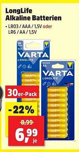 Normalerweise kostet ein 30er-Pack dieser Batterien 8,99 Euro. Jetzt erhalten Sie die Batterien jedoch zum Aktionspreis von nur 6,99 Euro. Das entspricht einer Ersparnis von 22%! Ein perfektes Angebot, das Ihren Geldbeutel schont und gleichzeitig sicherstellt, dass Sie bestens ausgestattet sind.