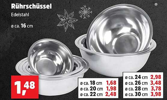 Entdecken Sie die praktischen Rührschüsseln aus hochwertigem Edelstahl, die in verschiedenen Größen erhältlich sind. Egal, ob Sie Backen, Kochen oder Mixen möchten, diese Schüsseln sind die perfekten Begleiter in Ihrer Küche. Mit einem Angebotspreis von nur 1,48 € bieten sie nicht nur Funktionalität, sondern auch ein hervorragendes Preis-Leistungs-Verhältnis.