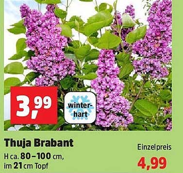Sehen Sie sich jetzt das Thuja Brabant im 21 cm Topf Angebot im Thomas Philipps Prospekt an. Dieses Angebot ist gültig von 30.03.2025 bis 05.04.2025.
