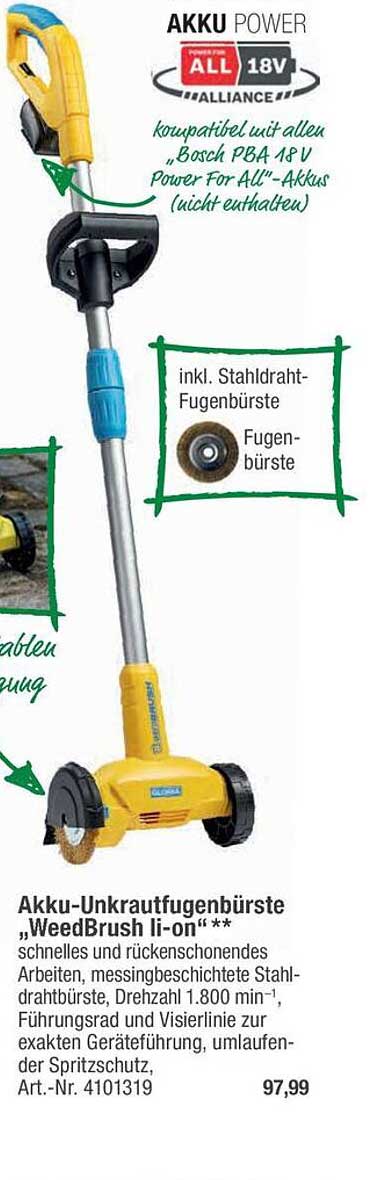 Akku-Unraufugendbürste „Weedbrush Li-On“ Angebot bei toom Baumarkt