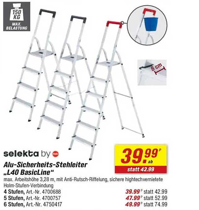 Sehen Sie sich jetzt das Alu-Sicherheits-Stehleiter „L40 BasicLine“ Angebot im toom Baumarkt Prospekt an. Dieses Angebot ist gültig von 19.07.2025 bis 25.07.2025.