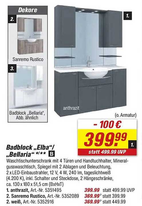 Sehen Sie sich jetzt das Badblock „Elba“/„Bellaria“ Waschbeckenunterschrank mit 4 Türen und Handtuchhalter Angebot im toom Baumarkt Prospekt an. Dieses Angebot ist gültig von 19.07.2025 bis 25.07.2025.