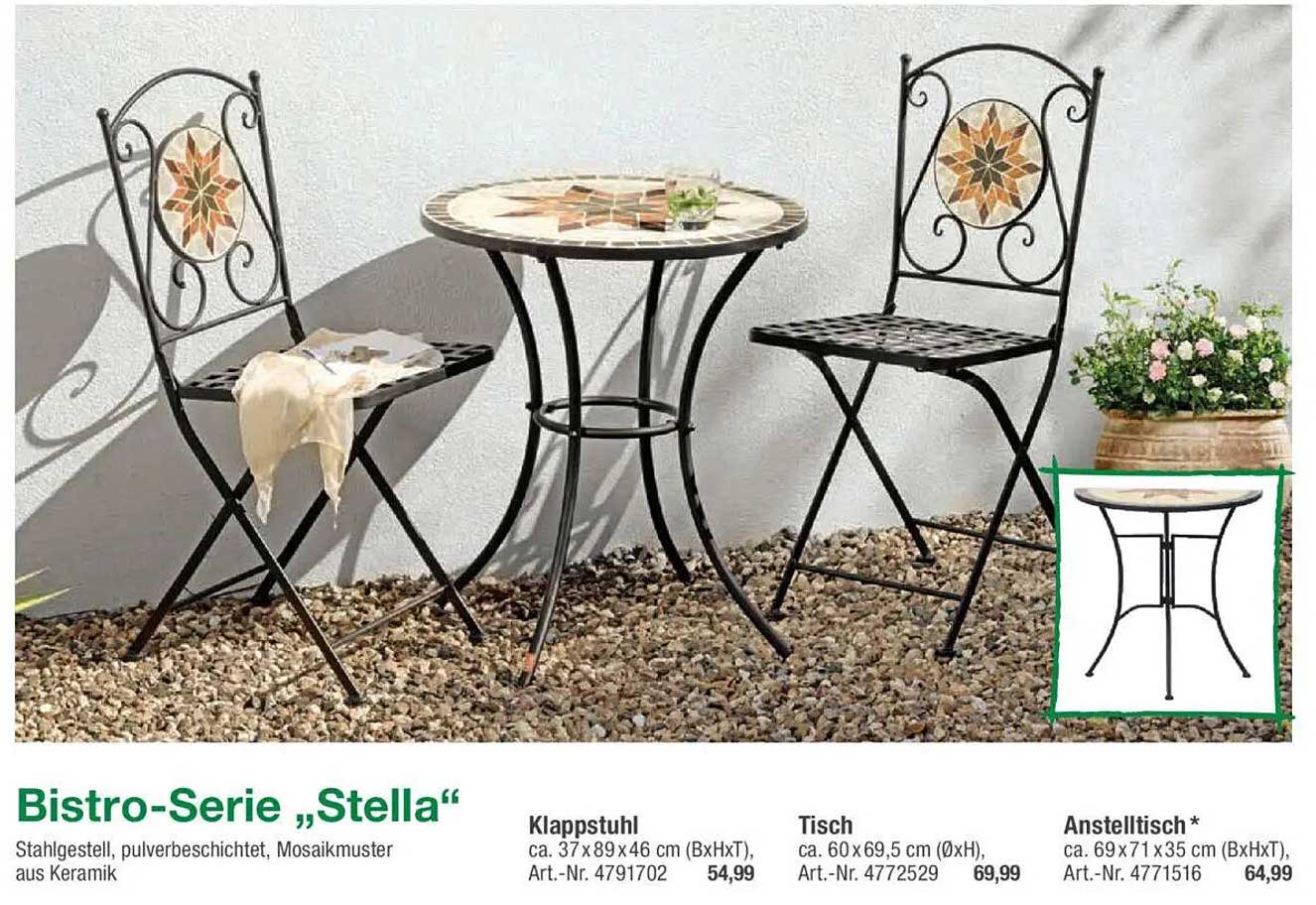 Sehen Sie sich das Bistro-Serie „Stella“ Angebot bei toom Baumarkt an! Dieses fantastische Angebot ist jetzt im neuesten toom Baumarkt Prospekt verfügbar. Nutzen Sie diese Chance und sparen Sie viel bei Ihrem Einkauf.