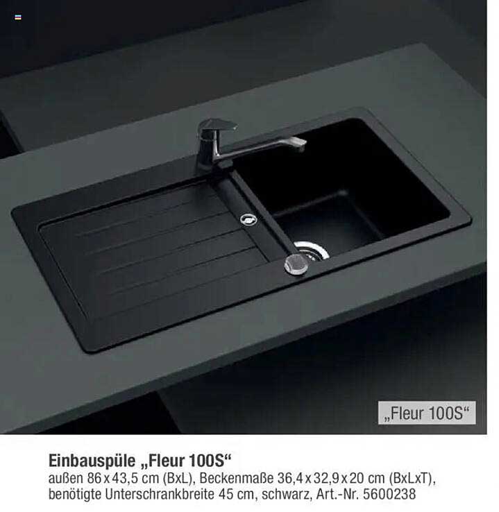 Sehen Sie sich jetzt das Einbauspüle „Fleur 100S“ Angebot im toom Baumarkt Prospekt an. Dieses Angebot ist gültig von 19.02.2025 bis 30.04.2025.